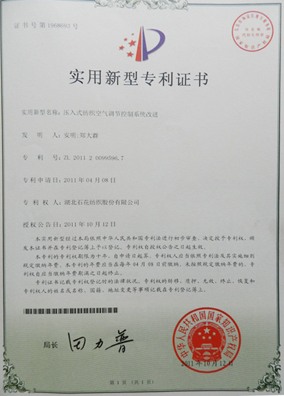 | 湖北名牌產(chǎn)品 | 實用新型專利證書 |